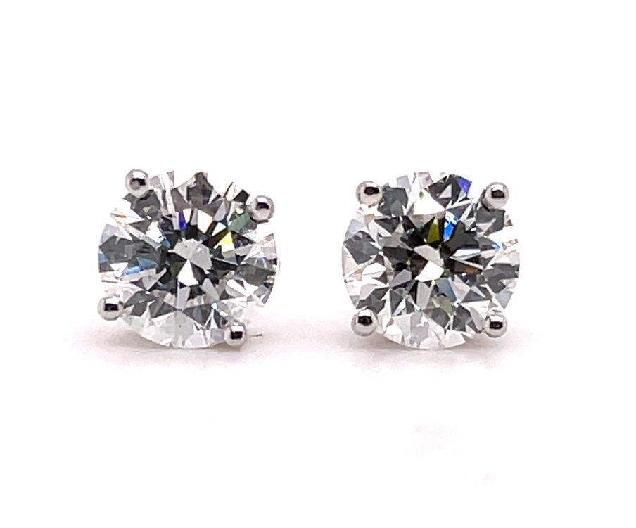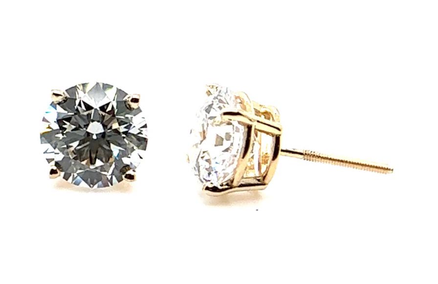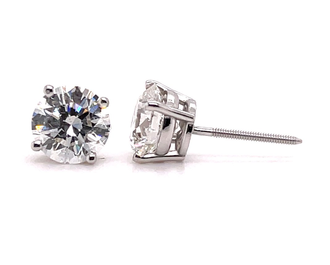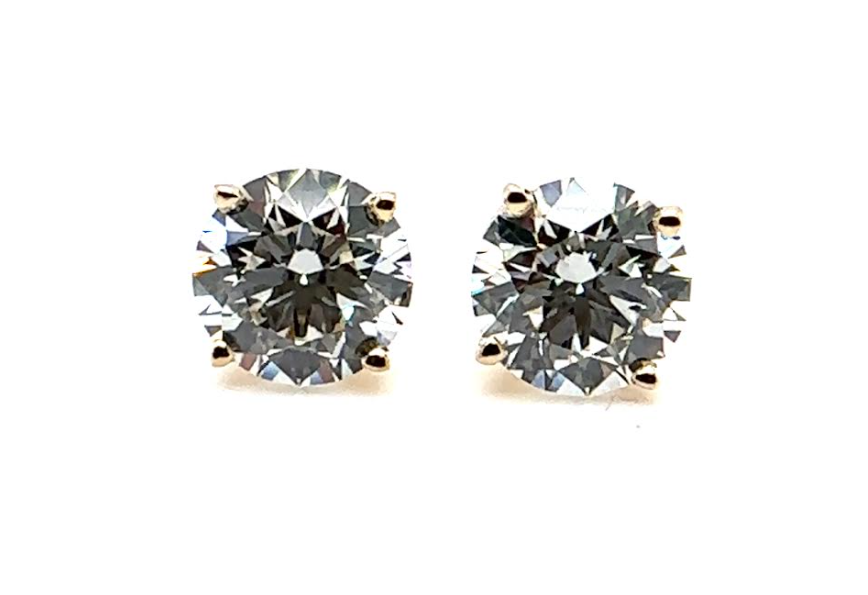 This pair of diamond solitaire earrings is set into a simply, elegant four prong basket setting with 1.00 carat round brilliant diamonds in each ear, 2.00 carat total combined weight. Available in all matched pair total weights from 0.50 carat up to 8.00 carat total weight and both yellow or white gold. Pricing starts from $400 and up.